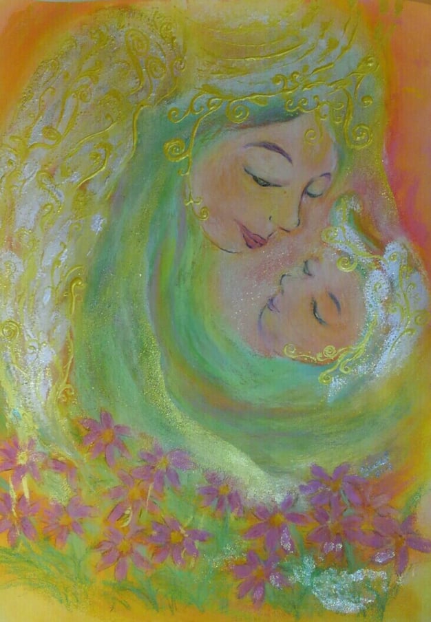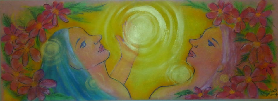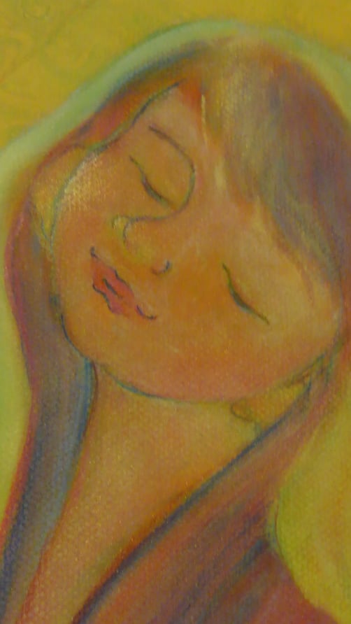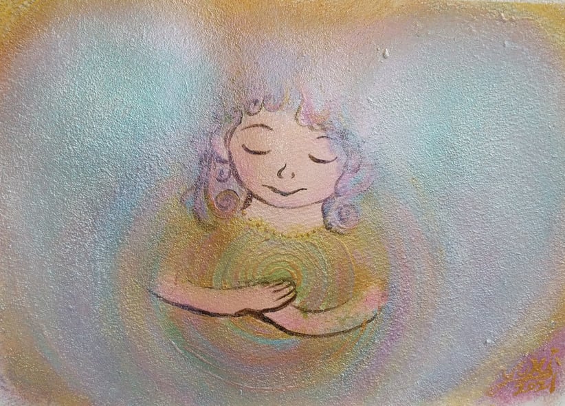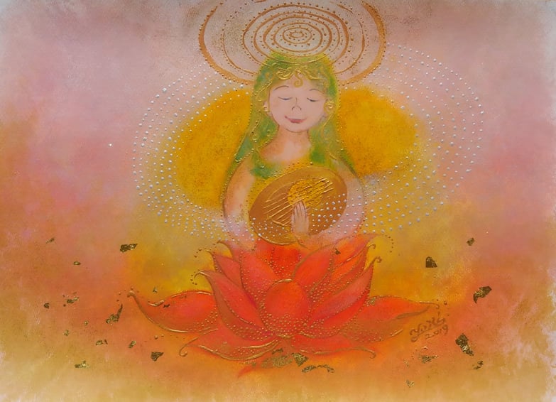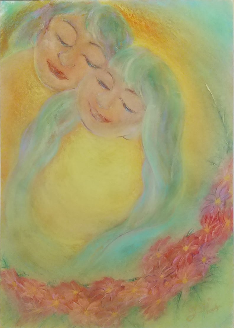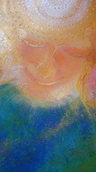 光の中に包まれているまなざし。 その場所に流れるエネルギーはきっと絵の中を通してこちらに一緒にやってきます。