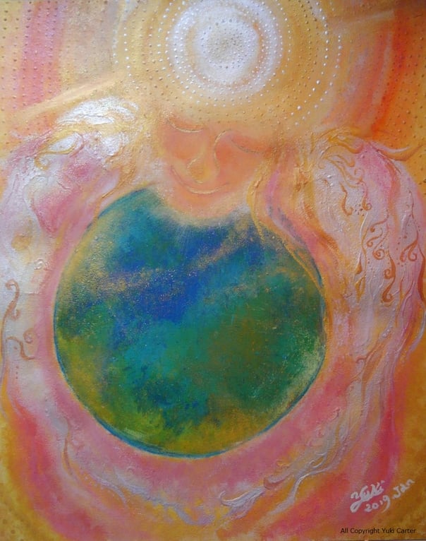 そこから浮かんだイメージは地球を抱く光の大天使でした。