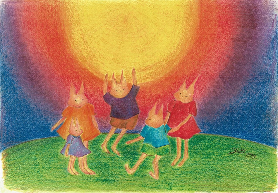 幼い頃、幼稚園で自分の持ち物がわかるように母が全てのものに当時好きだった”うさ子ちゃん”(現在のミッフィー)のマークを描いてくれていました。その影響もあったのでしょうか…私の中では既にその頃からウサギは洋服を着ていました。