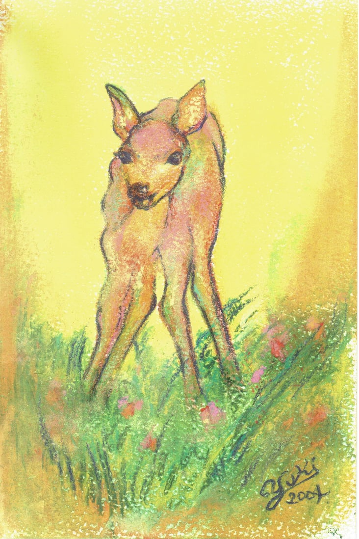 I love their eyes and also lithe body. There are lots of wild dear in MIYAJIMA ISLAND (HIROSHIMA). I went to there many times to take photo of dear. The model of dear in my painting is dear in MIYAJIMA ISLAND.