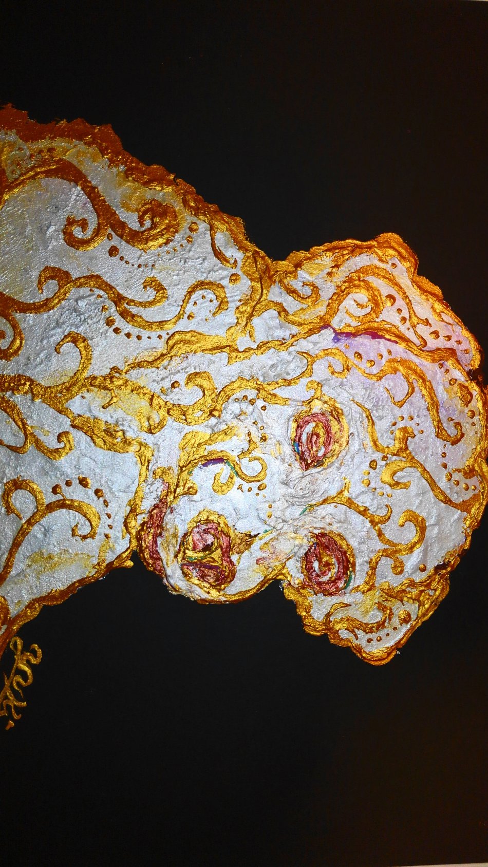 Also I strongly felt must use Gold paint for this elephant and I started use Gold poster color paint.(Now I use acrylic color,Japanese Kindei (Gold powder ) also real Gold leaves.)